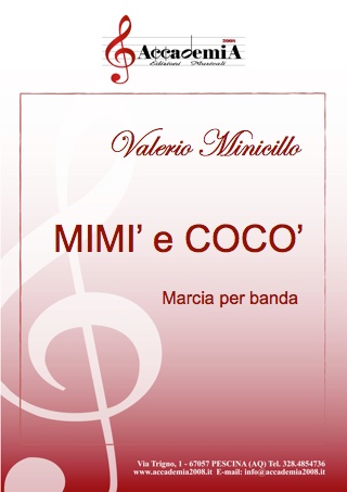Bellissima marcia sinfonica di Valerio Minicillo dalle melodie imponenti e maestose, seducenti e raffinate, composte di getto senza ausilio di strumenti di qualsiasi tipo, "Mimì e Cocò" rappresenta una composizione originalissima, divertente per chi suona e piacevole per chi ascolta.